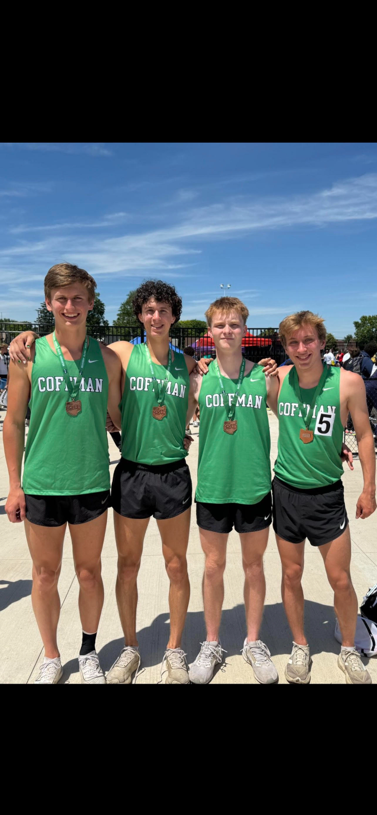 The Boys 4 x 800 Relay Team of Jeremy Bons, Max Ehrsam, Zak Heyob, and Caden Ozbun finished